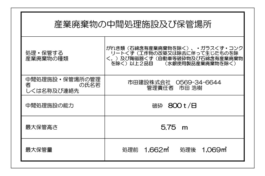 | 保管上限量 | 処理前1,662㎥ 処理後1,069㎥ |